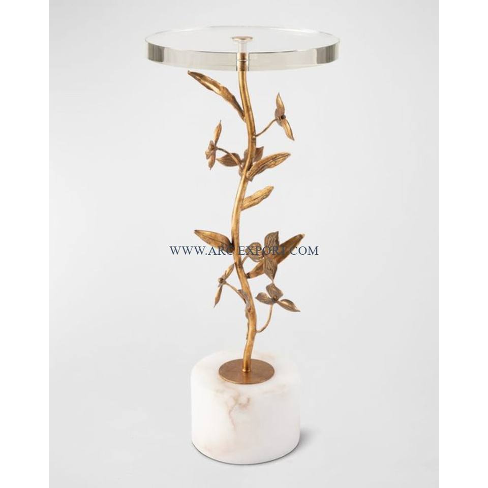 Leaf Designing Antique Designing Handmade Unique Coffee Side Table Acrylic Top Side Table With White Marble Base Furniture Table