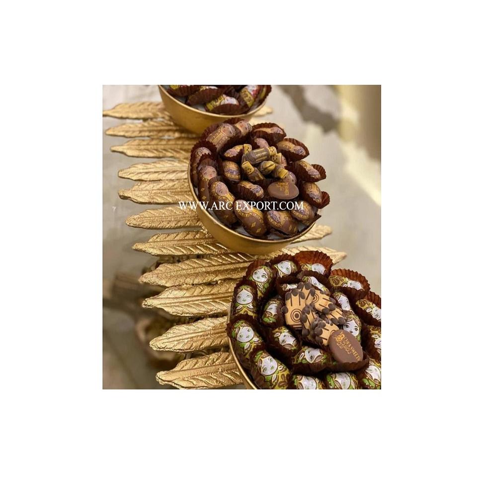 Leaf Designing Stand 3 Tier Standard Designer Metal Gold Plated Brass Chocolate Server Bowl Home Dinnerware Mixing Bowl in India