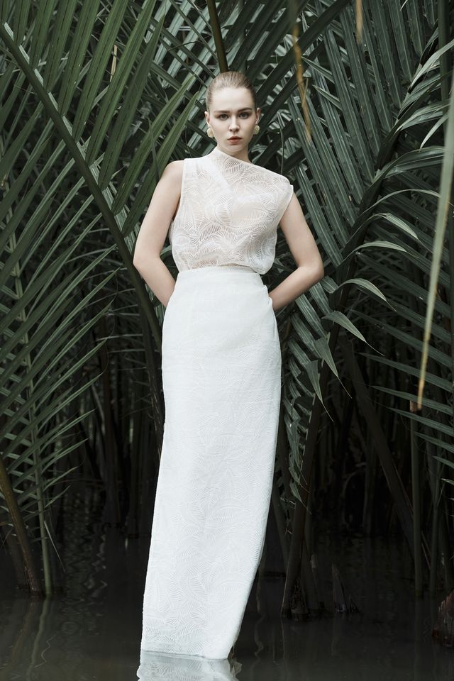 Leaf Pattern Midi Women's Skirt Side Slit ALETHEA ASYMMEKIC SKIRT 72%Viscose 28%Polyester Spring Summer 2025 Women Clothing
