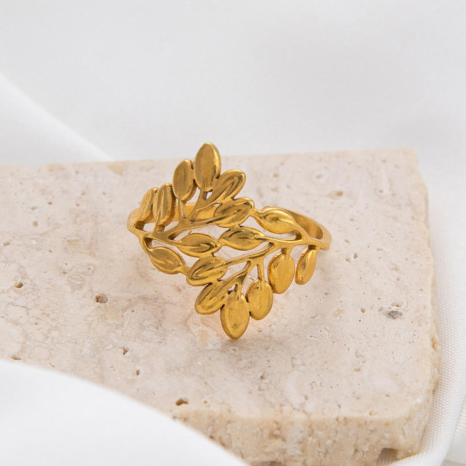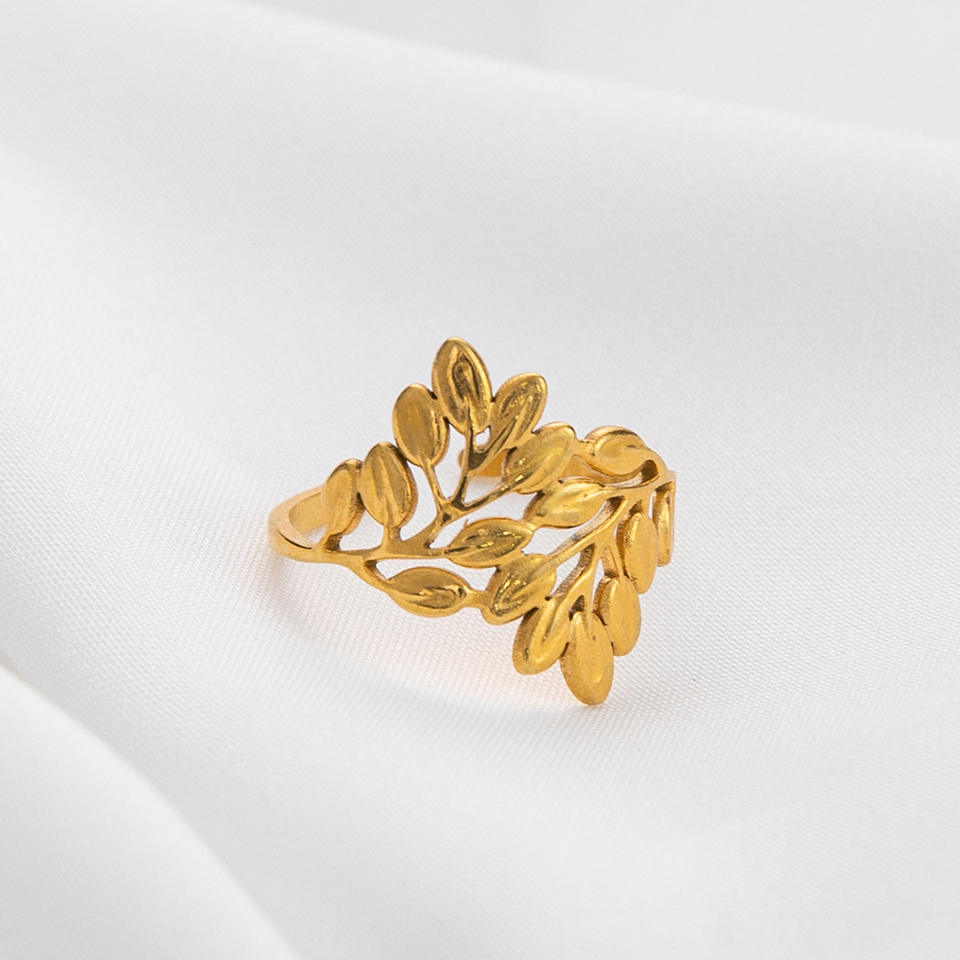 Leaf Pattern Stainless Steel Open Ring 18K Gold Plated Unisex Fashion Jewelry Gift For Summer