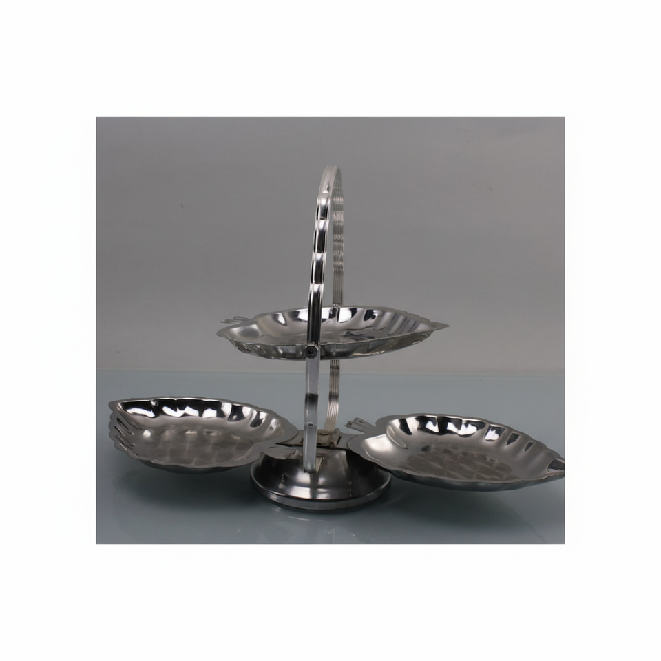 Leaf Shape Cake Stand 3 Tier New Texture Design Cake Stand for Dessert Cup Cake and Other Snack Serving Silver Coated From India