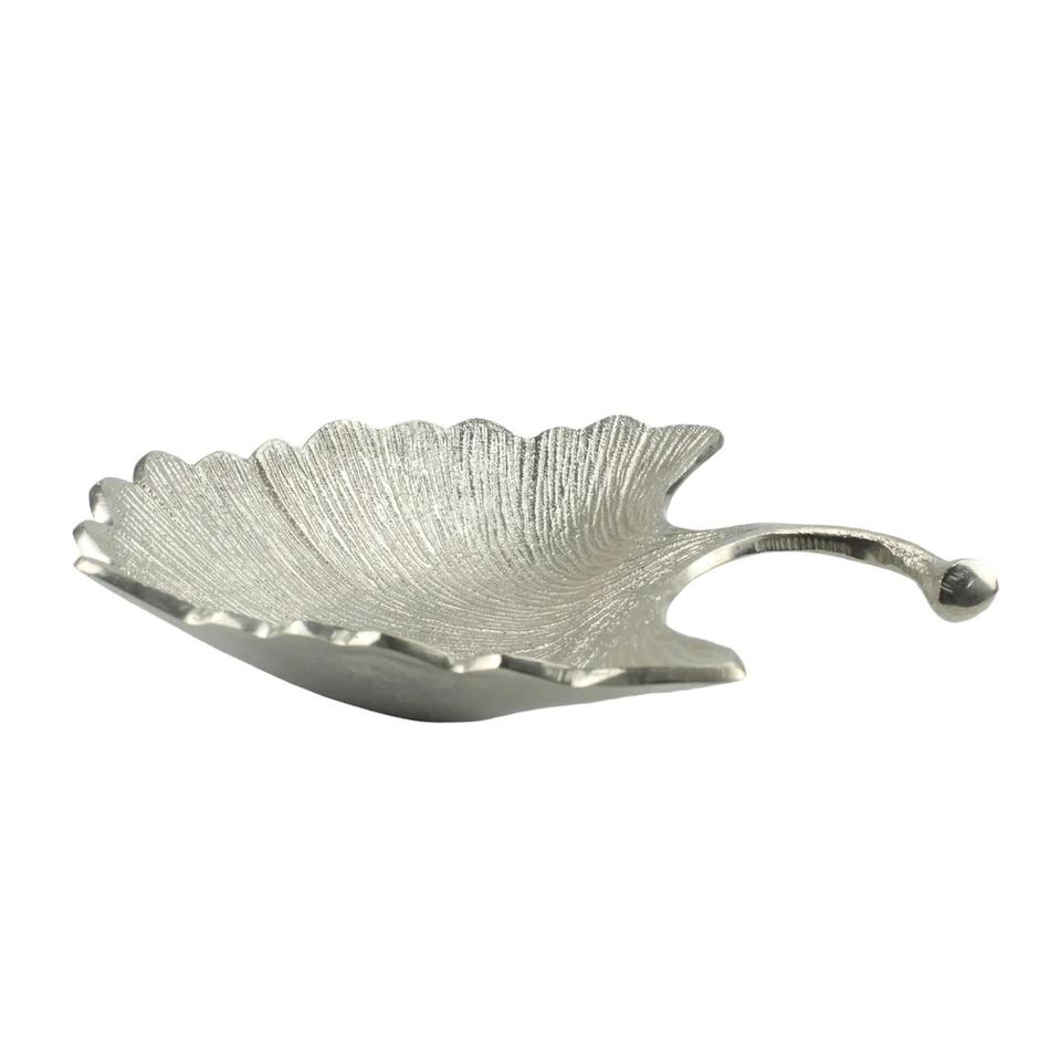 Leaf Shaped Silver Color Metal Bowl With Customized Color and Sizes With the Sizes of 7cm H X 32.5cm W X 31cm L