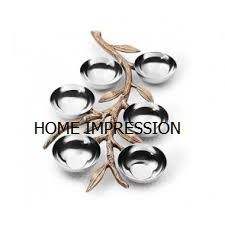 Leaf Stripe Metal Decorative Centerpiece Bowl Nickel and Gold Popular Food and Dessert Serving Bowls From Indian Supplier