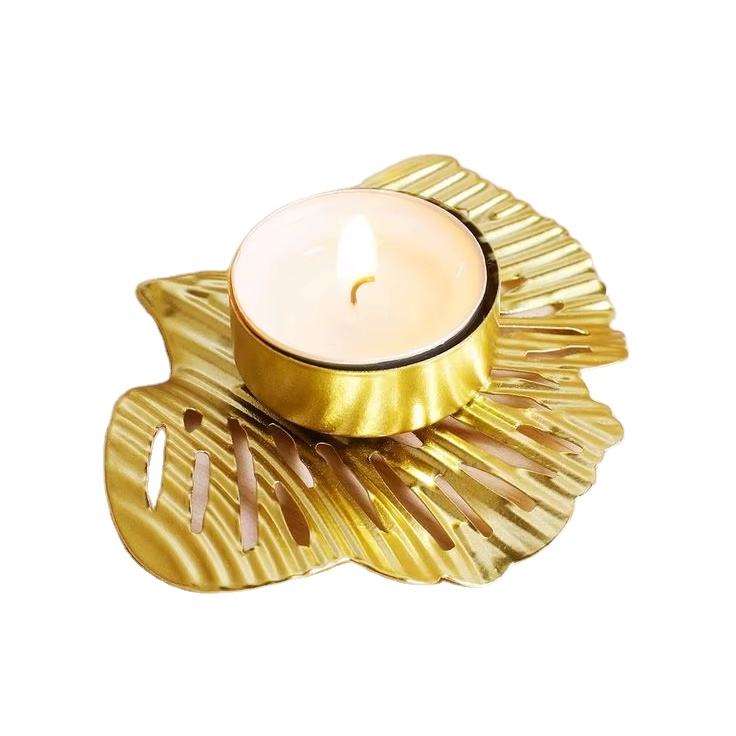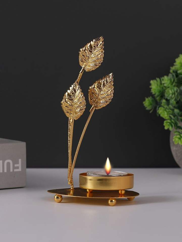 Leaf shaped candle holder Tea light stand for home Decorative lighting holder Candle stand for Diwali Gold tea light holder