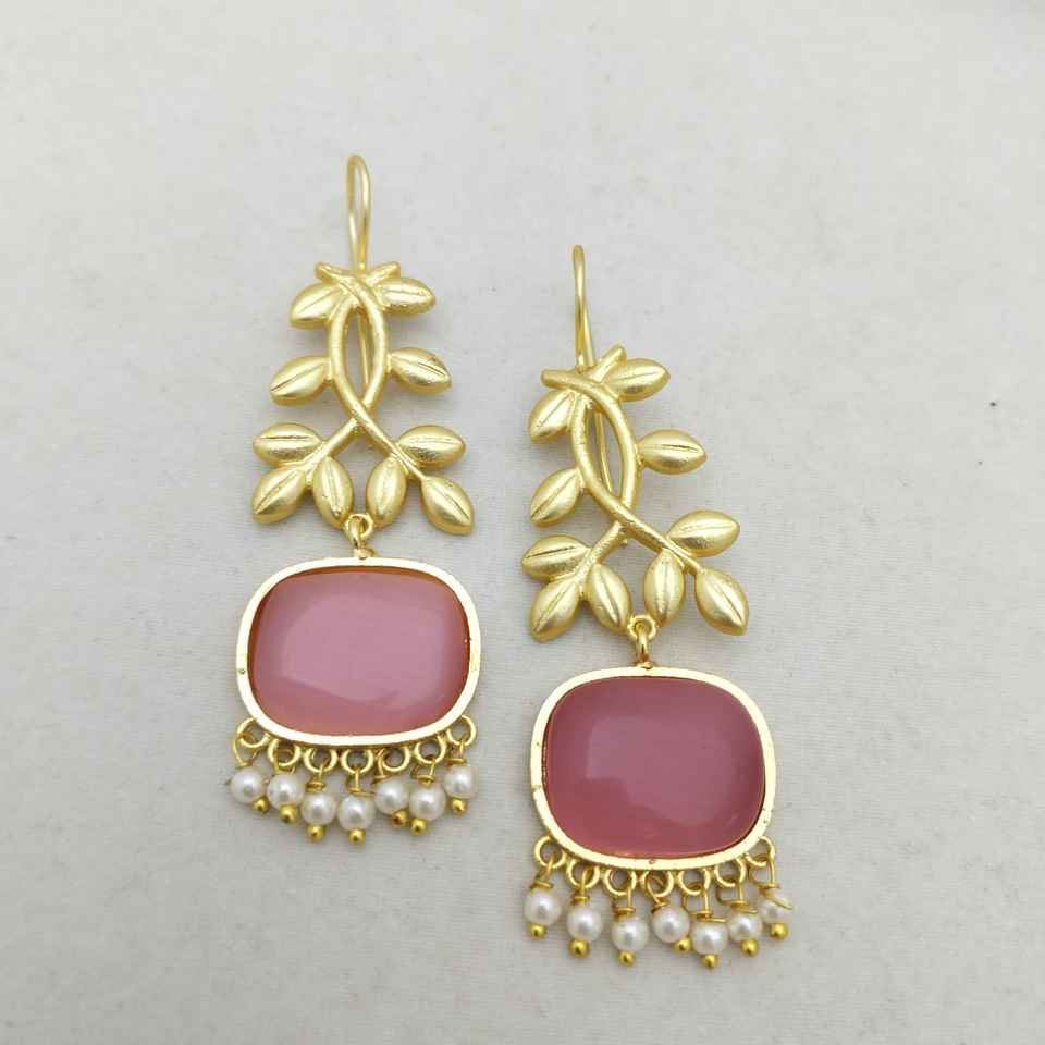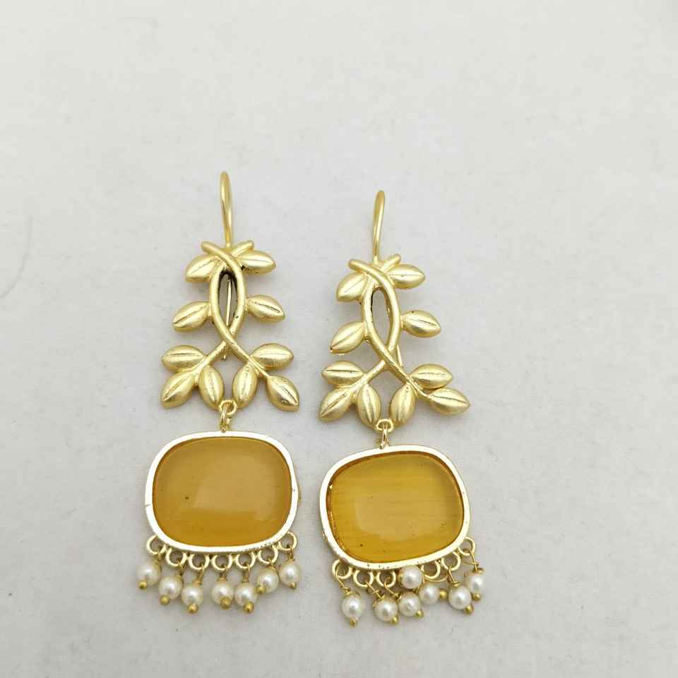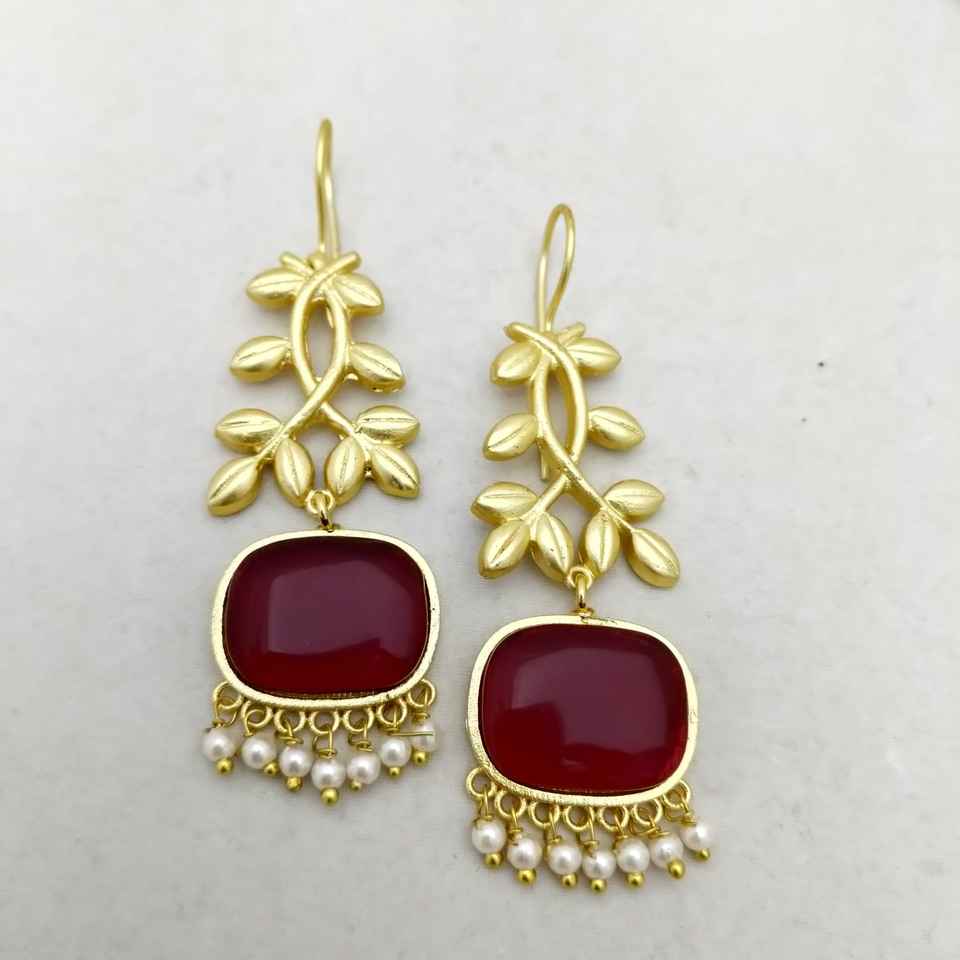 Customizable Design Leafy Vine Motif Pattern Matte Gold-Plated Alloy Heavy Brass Drop Earrings Set for Bulk Fashion Product