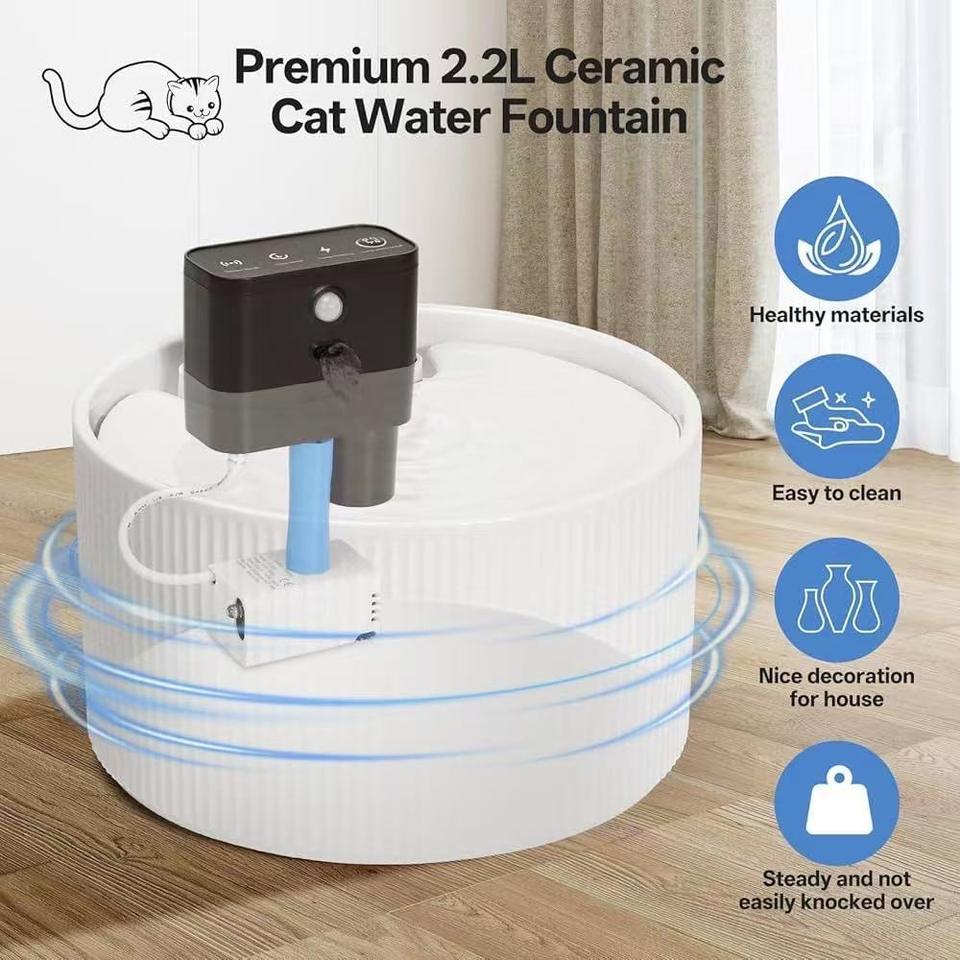 Automatic 2.2L ceramic pet water fountain with ultra-quiet pump