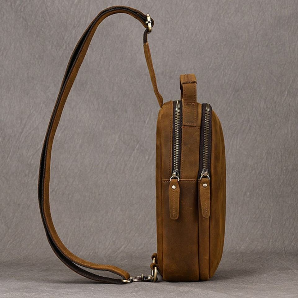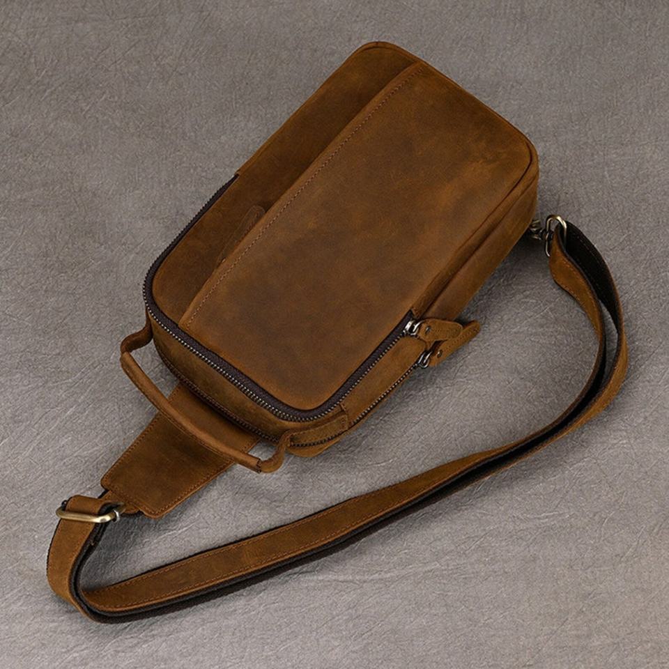 Leather Bag Men With Large Capacity Casual Outdoor Chest Personalized Triangle Crossbody Purse for LCB-0030B