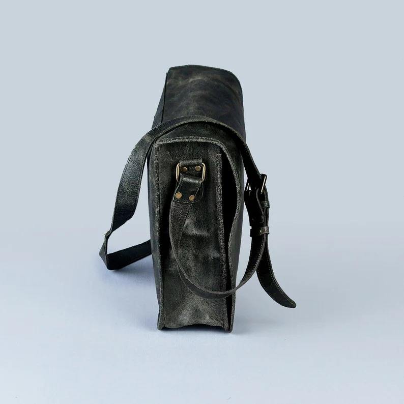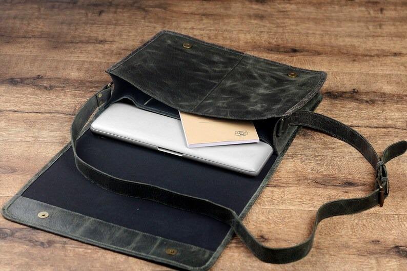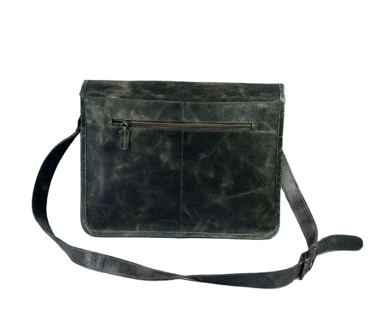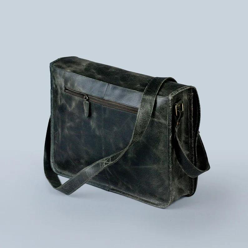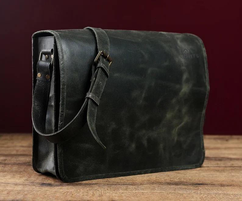 Unisex Genuine Rustic Leather Vintage College Bag Bohemian Messenger Laptop Briefcase Shoulder Strap Green for Summer Winter
