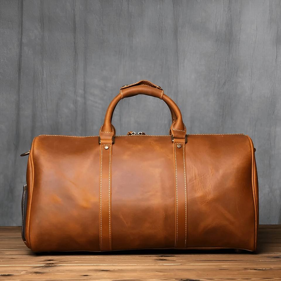 Custom Logo Genuine Leather Duffel Bag Travel Camping Luggage with Zipper Closure Reusable Manufacture Leather Belt