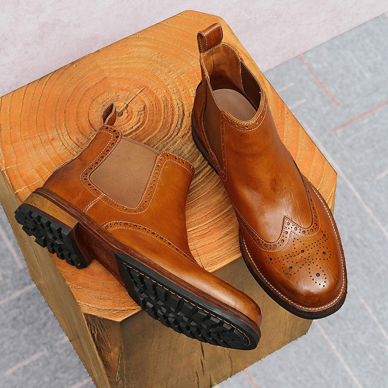 Leather Genuine Leather Balmoral for Boot Lace-Up Ankle Men Hand Sanded Texture Amish Work Wear Style Solid Waterproof