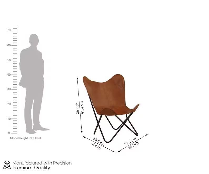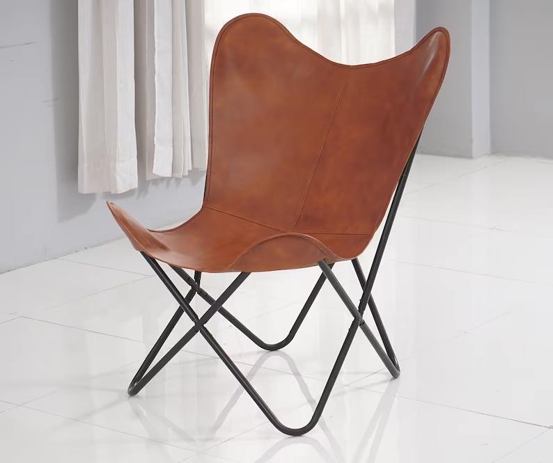 Rustic Leather Butterfly Chair Iron Frame Beautiful Foldable Design for Outdoor Indoor Use for Bedroom Living Room Leisure