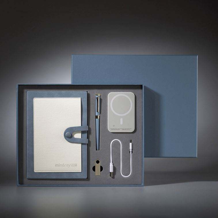 Leather Button Pocket Notebook Pen Set with Magnetic Wireless Charging Power Bank & USB Flash for 2025 New Business Gift Items