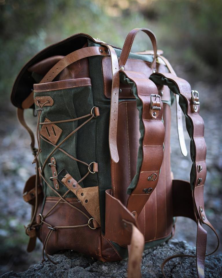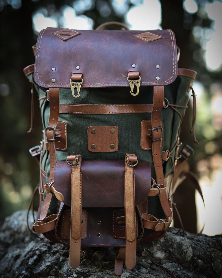 Leather Canvas Backpack Durable Lightweight Eco-Friendly Travel School Hiking Shoulder Unisex Stylish Large Capacity Laptop