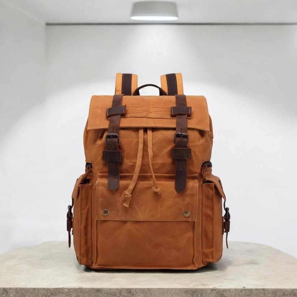 Genuine Leather Canvas Backpack Water Resistant Lightweight Travel Laptop Bag 36-55L Capacity Wholesale OEM Factory Direct