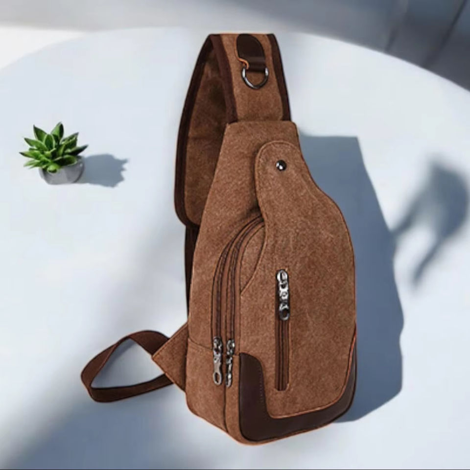 Leather Canvas Chest Bag Fashion Zipper Closure Outdoor Travel Crossbody Sling Bag for Men Women Daily Use CSB-0036