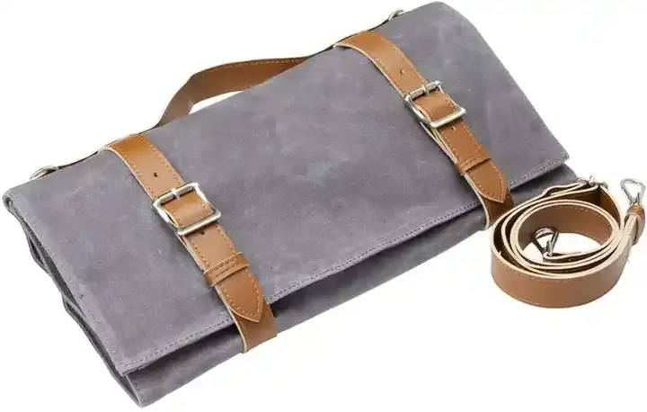 Leather Canvas Knife Roll Smell Proof Heavy Duty Comfortable Multi-function Portable Chef Tool Carrier Kitchen Holder LCK-0033