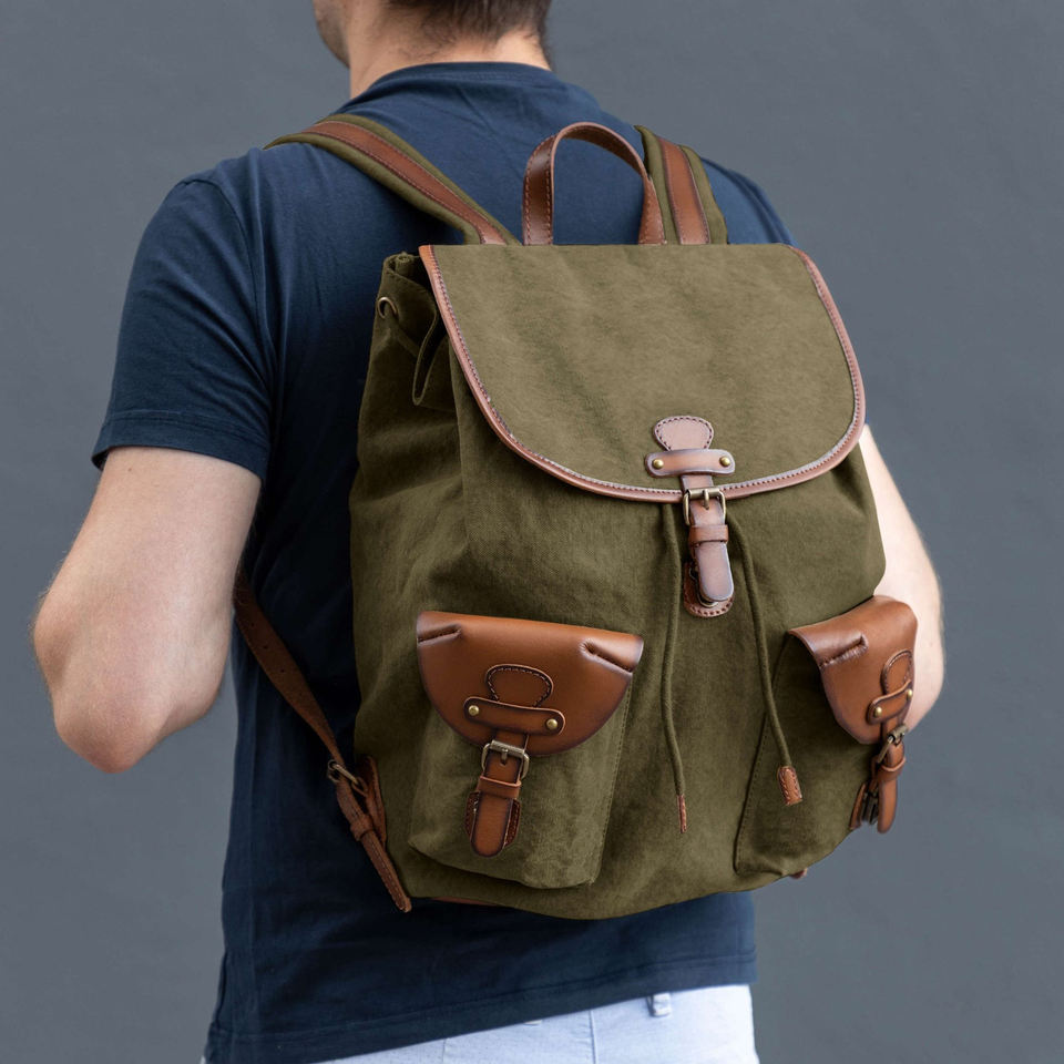 Genuine Leather Canvas Backpack