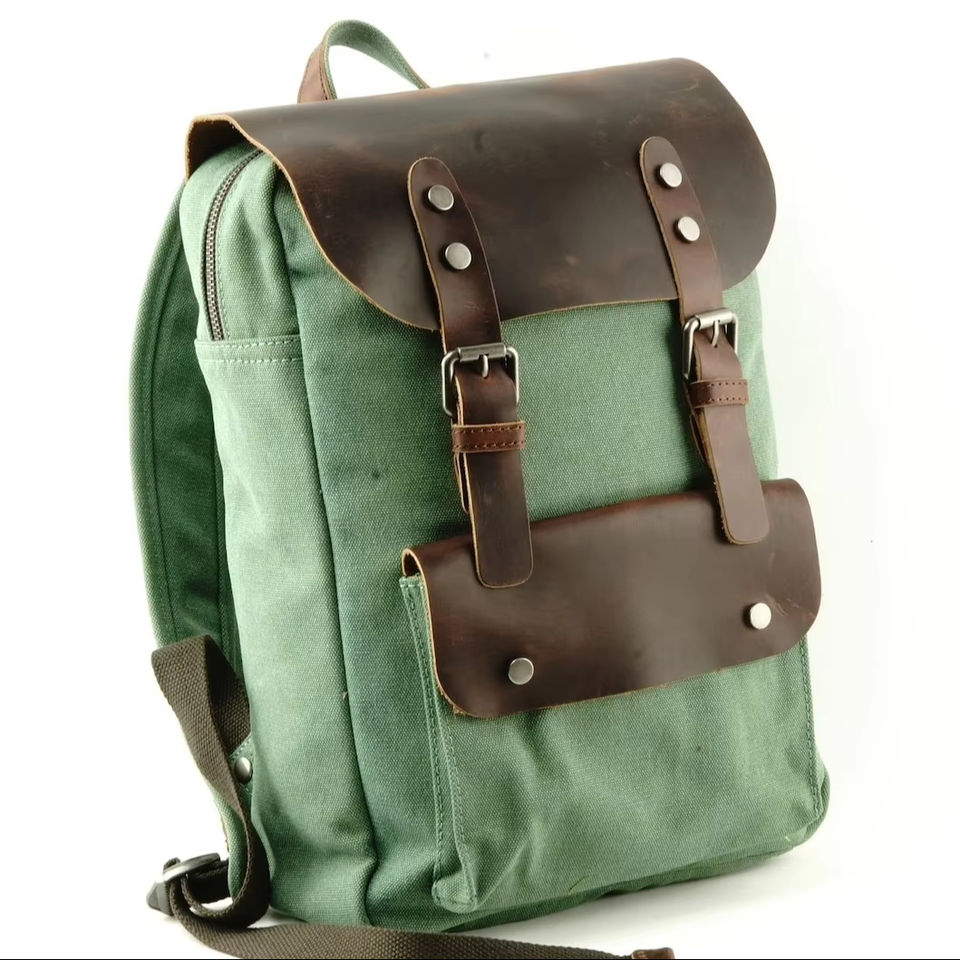 Leather Canvas Luxury Backpack Stylish Outdoor Travel School Laptop Rucksack Breathable Large Capacity Lightweight ECO-Friendly