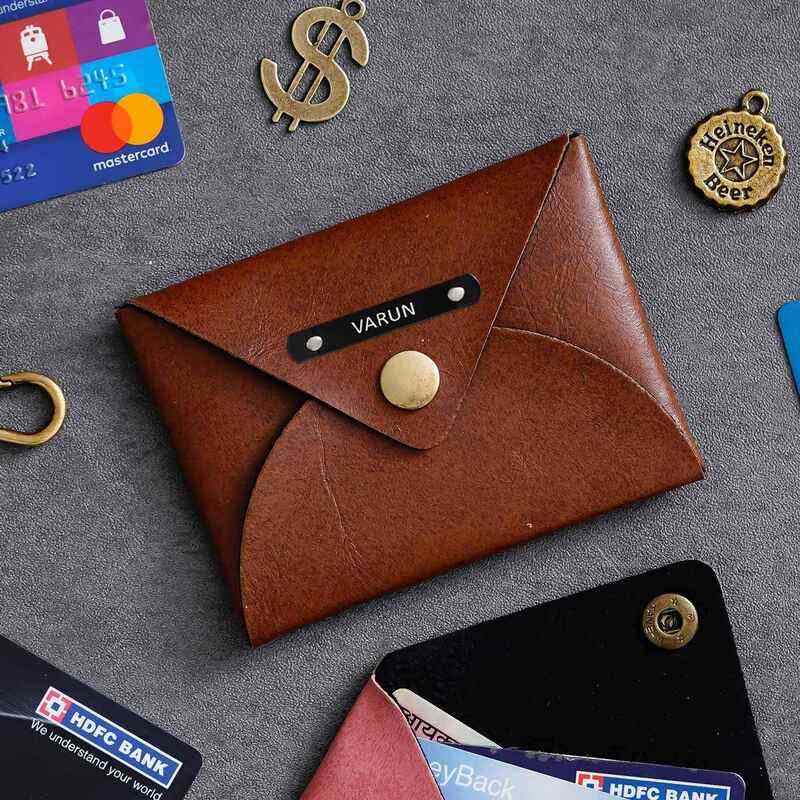 Leather Card Holder Stylish Minimalist Bifold RFID Blocking Card Wallet with Secret Pocket (Brown)