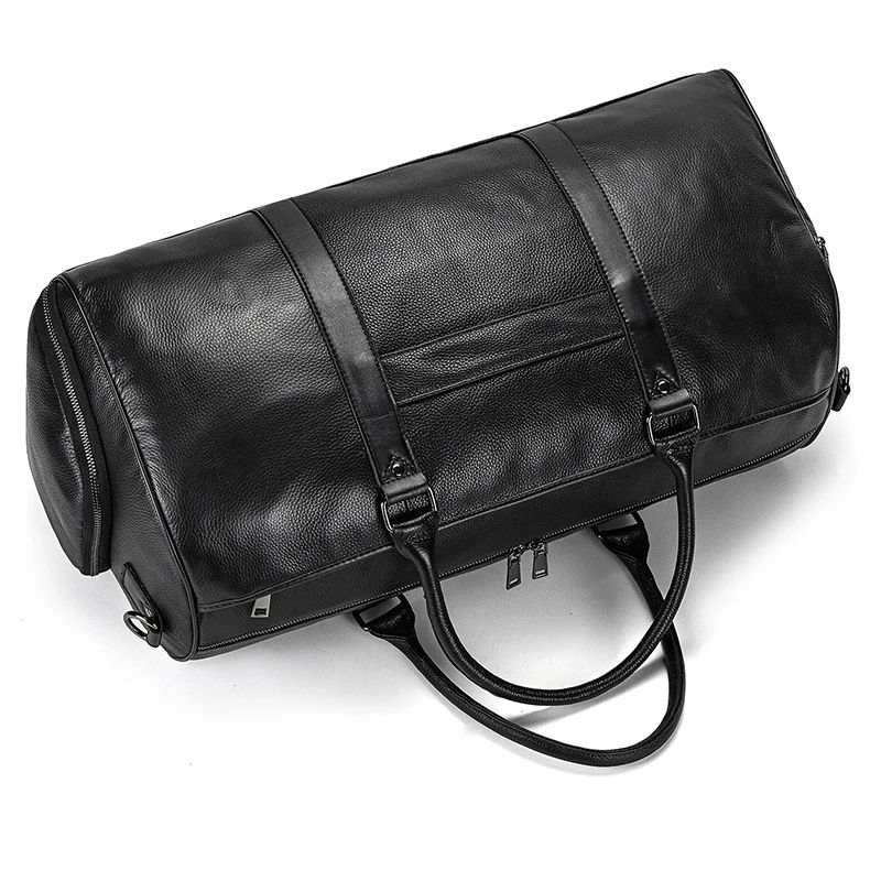 Genuine Leather Carry-On Travel Duffel Bag with Shoes Compartment Weekender Overnight Bag Zipper Closure Reusable for Women Men