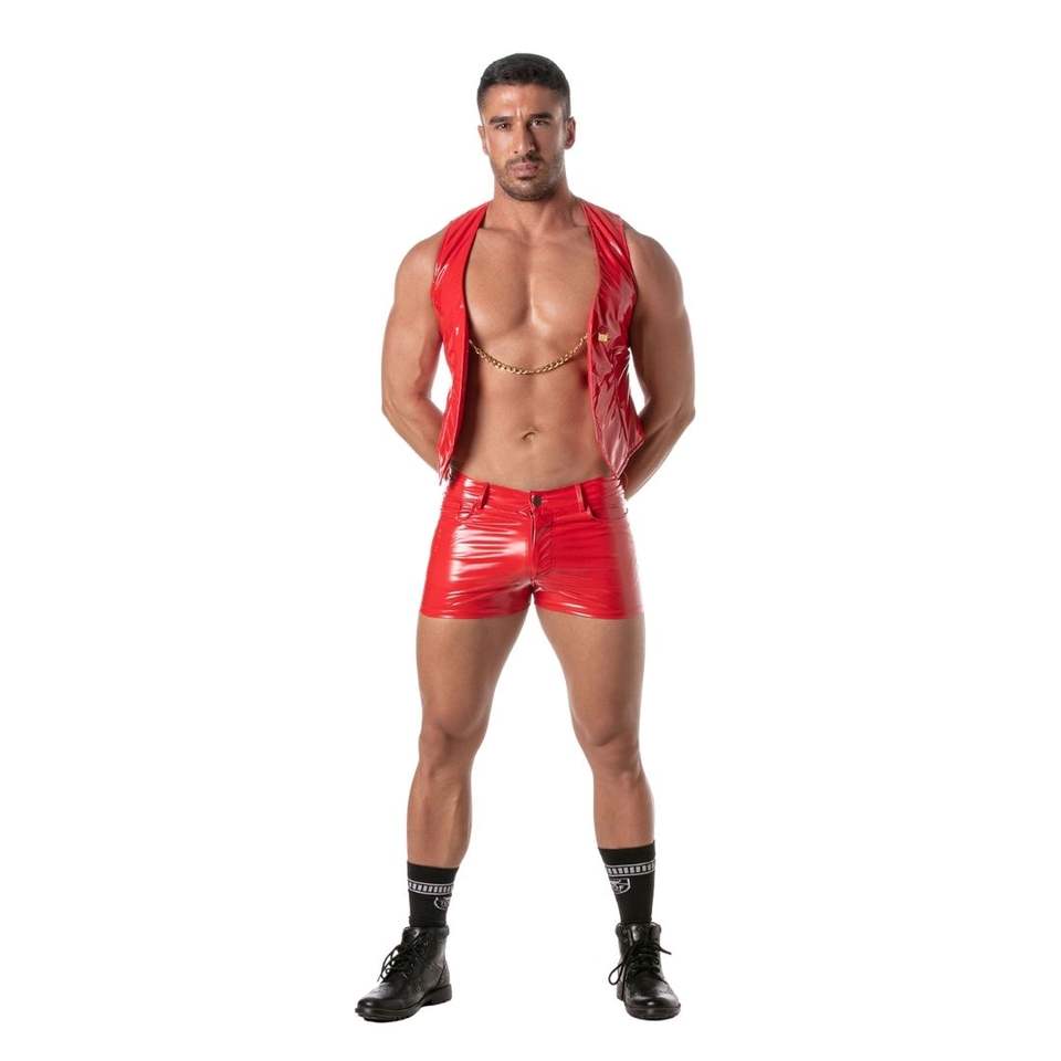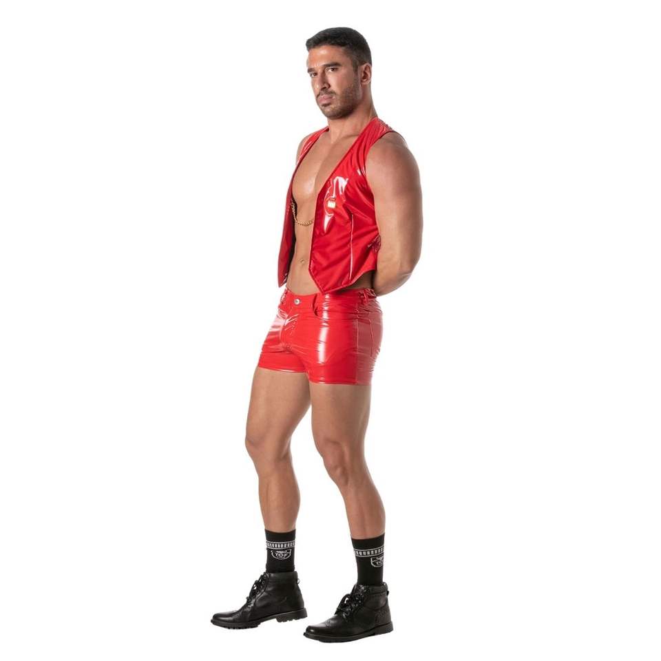 Leather Chain Vest Red Glossy Open Front Mens Waterproof Breathable Fetish Clubwear Sexy Night Party Statement