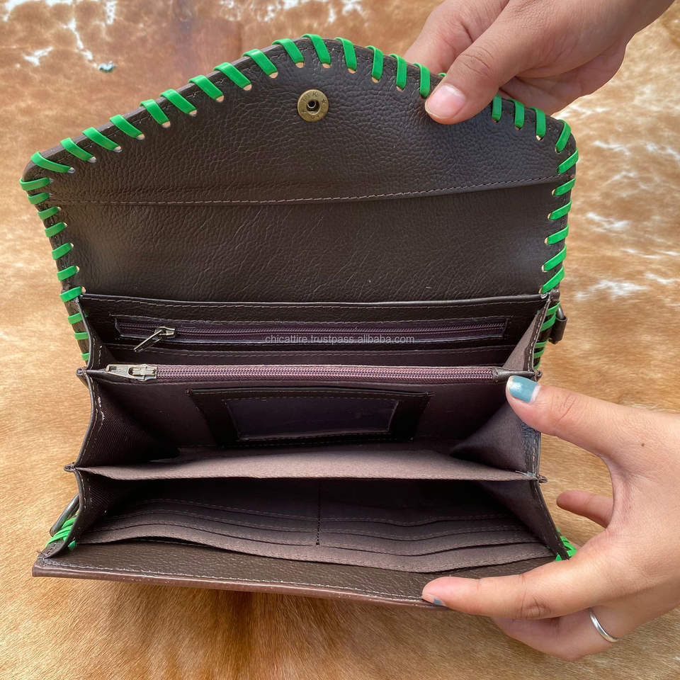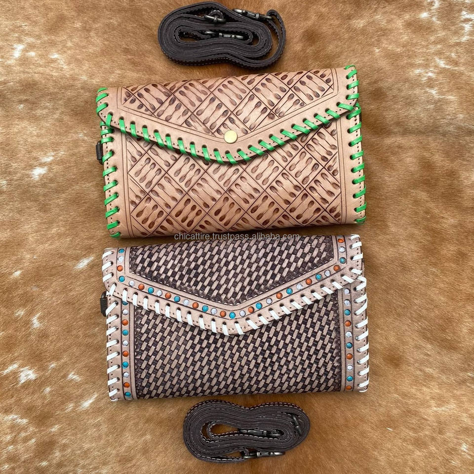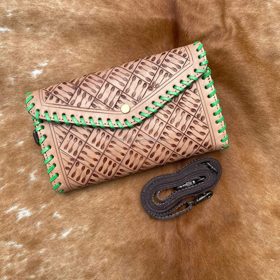 Leather Clutch Stylish Hand Tooled Carving Leather Multi Uses Western Leather Phone Case New Arrival Wallet Women's Multi Uses