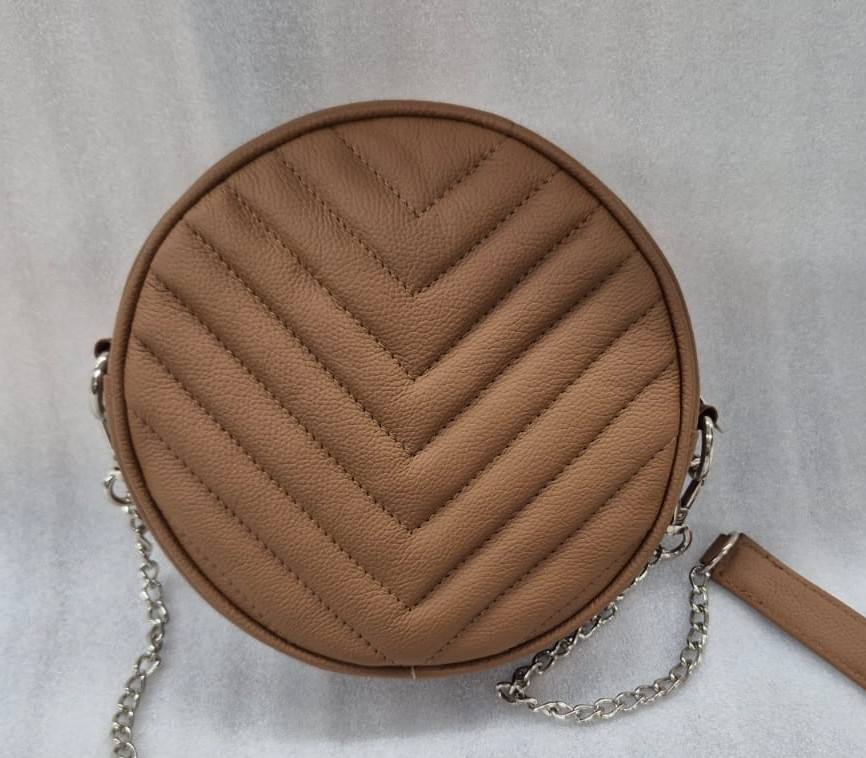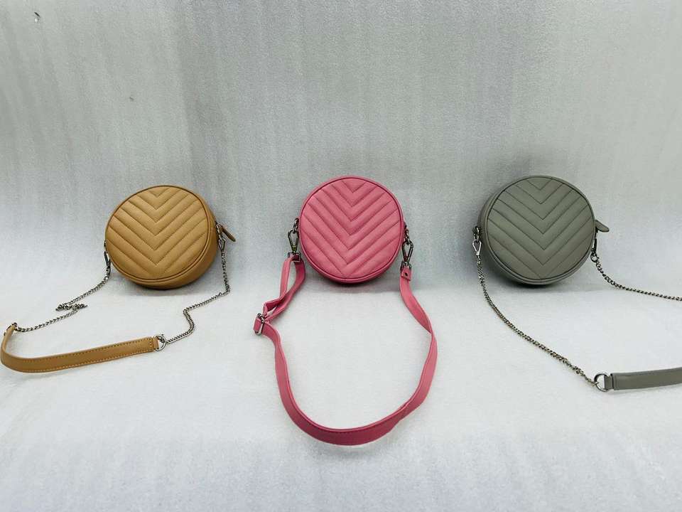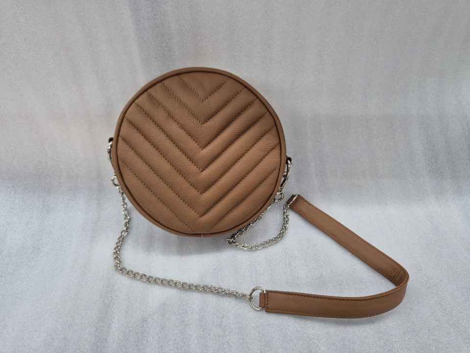 Lady Genuine Leather Crossbody Round Sling Bag with Single Zipper Closure and Adjustable Strap