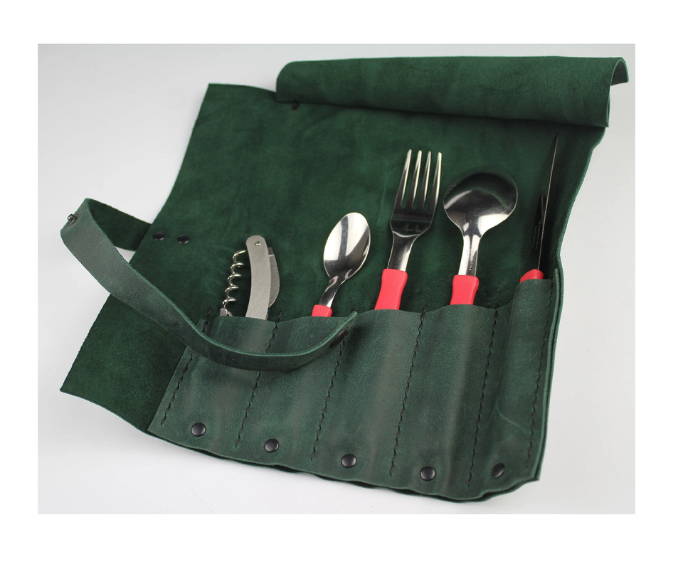 Leather Cutlery Holder Spoon Fork Knife Holder Cafe Bar Restaurant Cutlery Organizer Pouch and Free Sample Packing