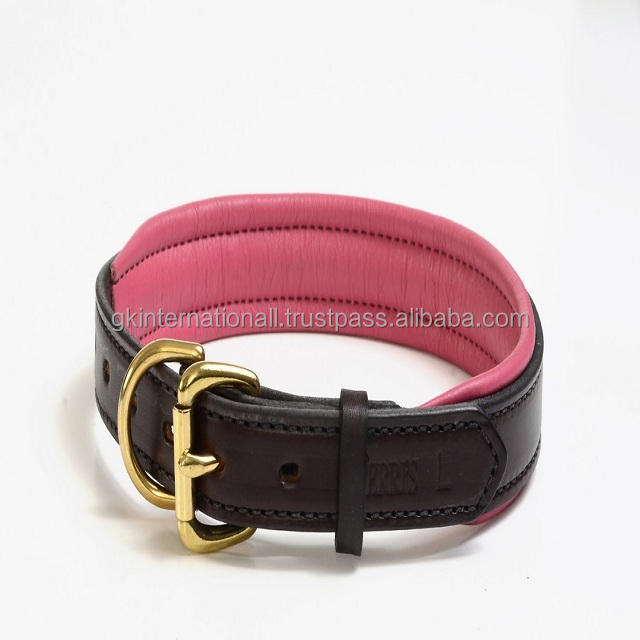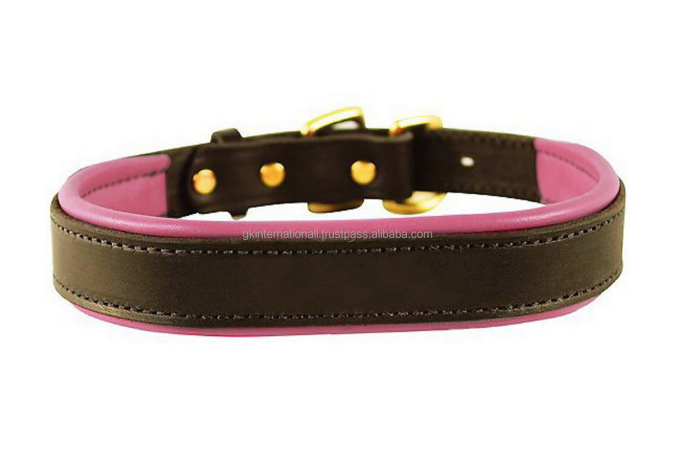 Leather Dog Collar with Colorful Padding Available in All Colors Made in India Bulk Order Leather Dog Pet Collar in All Sizes