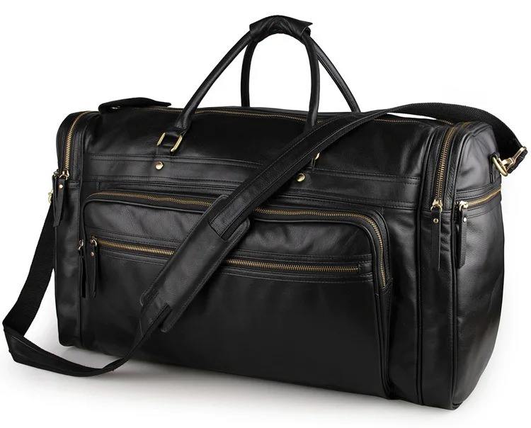 Custom Black Genuine Leather Eco-Friendly Large Reusable Portable Weekend Travel Duffel Bag