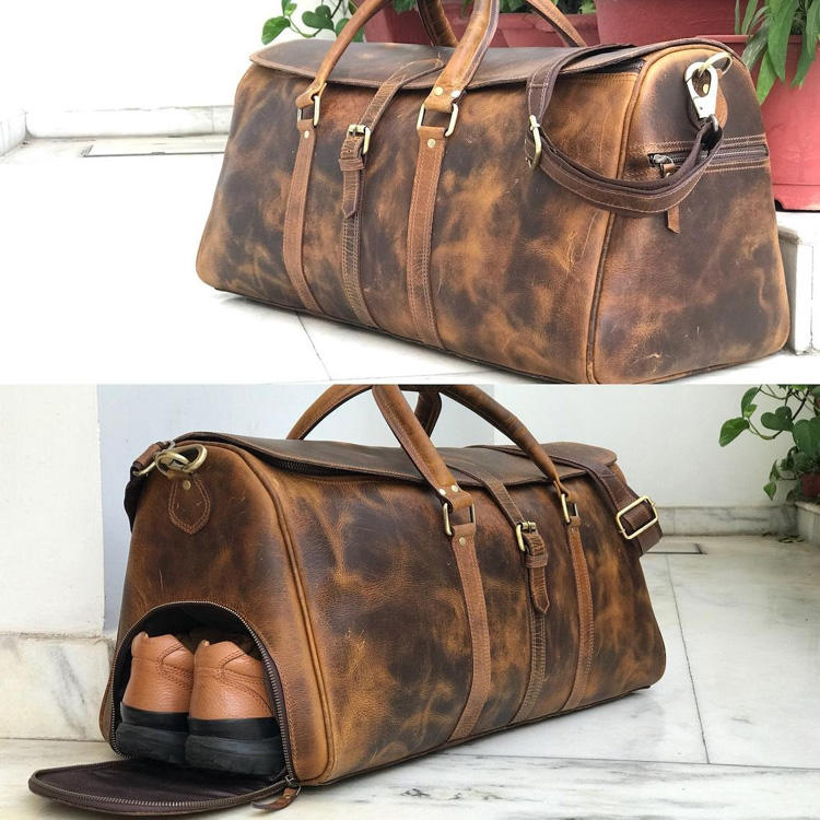 Leather Duffle Bag With Shoe Compartment Personalised Large Weekend Bag Vacation Holiday Travel Bag Vintage Best Men Unisex