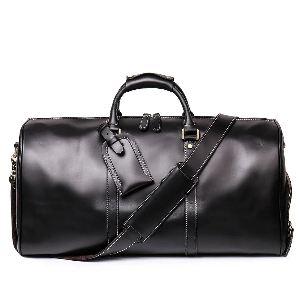Leather Duffle Bag for Travel with Toiletry Bag and Shoe Compartment, Weekender Overnight Gym Bag for Men Women