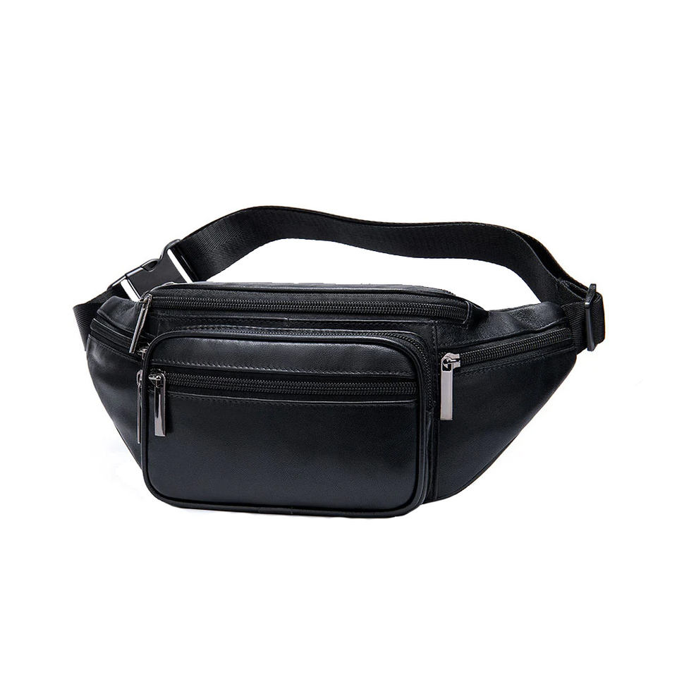 Genuine Leather Unisex Fanny Pack Waist Bag with Zipper Closure Waterproof Soft Handle for Outdoor Traveling