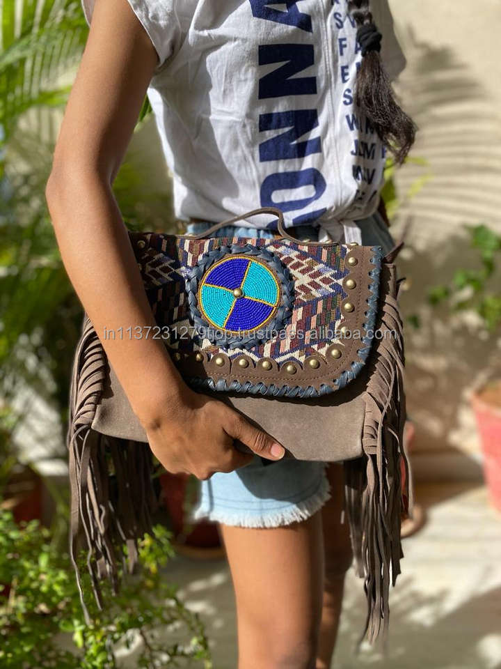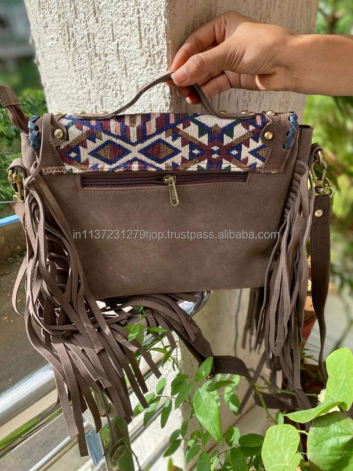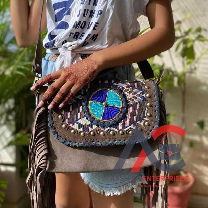 New Personalized Western Style Bohemian Leather Fringe Bag Handbag Tassel Leather Jacquard Fabric Fringe Bags Crossbody Bags