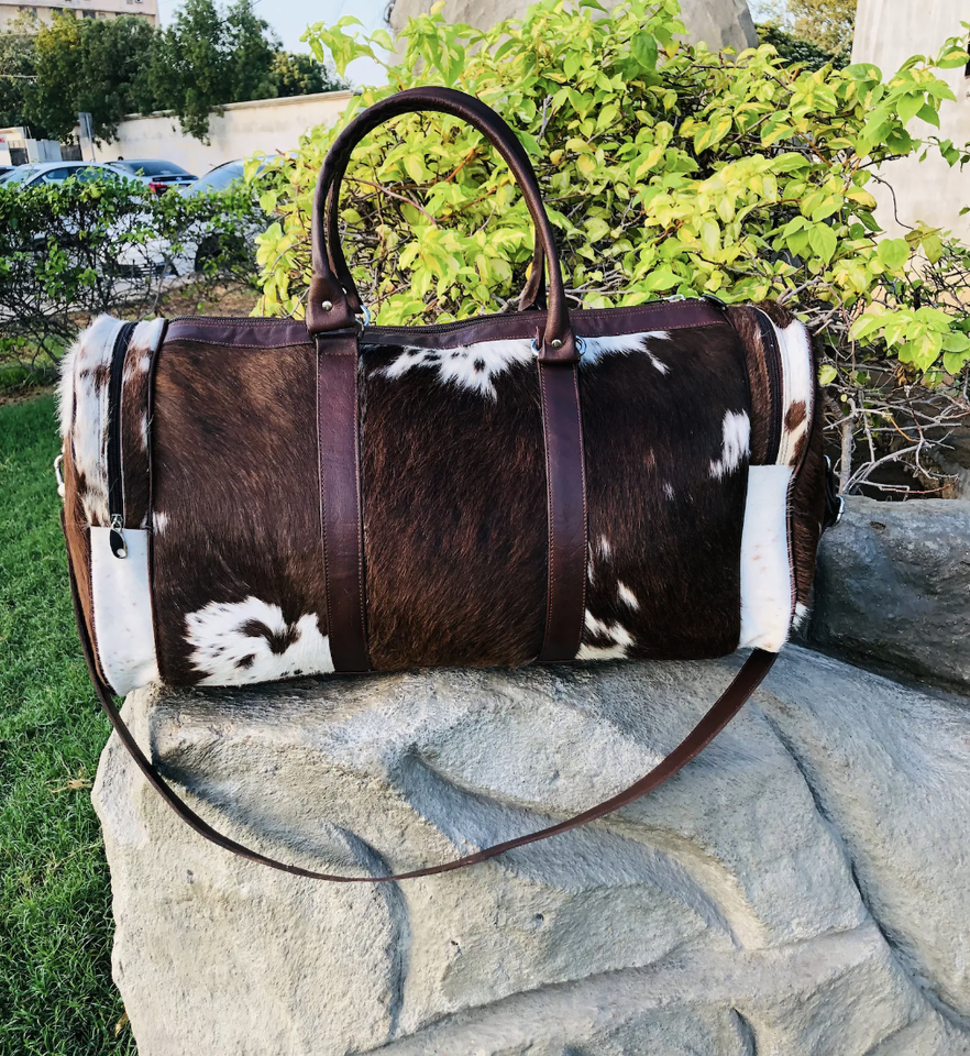 Genuine Leather Hair On Duffle Bag