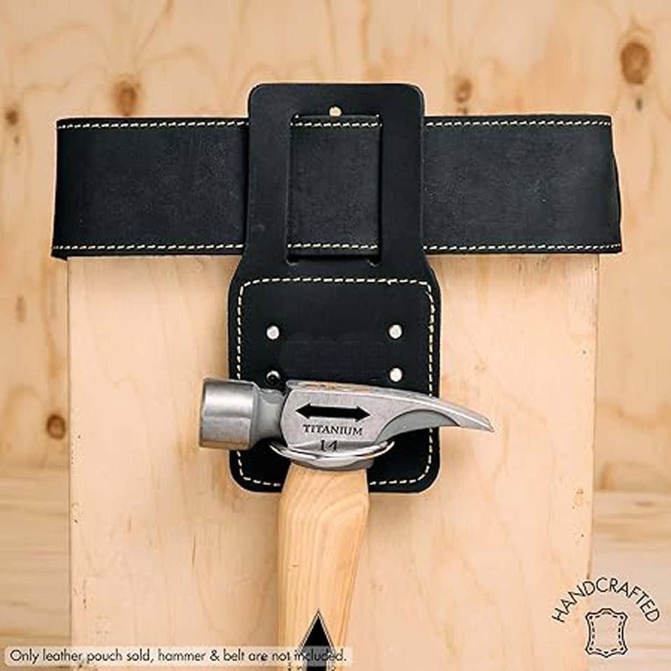 Leather Hammer Holder for Belt - Top Grain Leather Hammer Holster with Steel Hammer Loop & Reinforced Heavy Duty Rivets