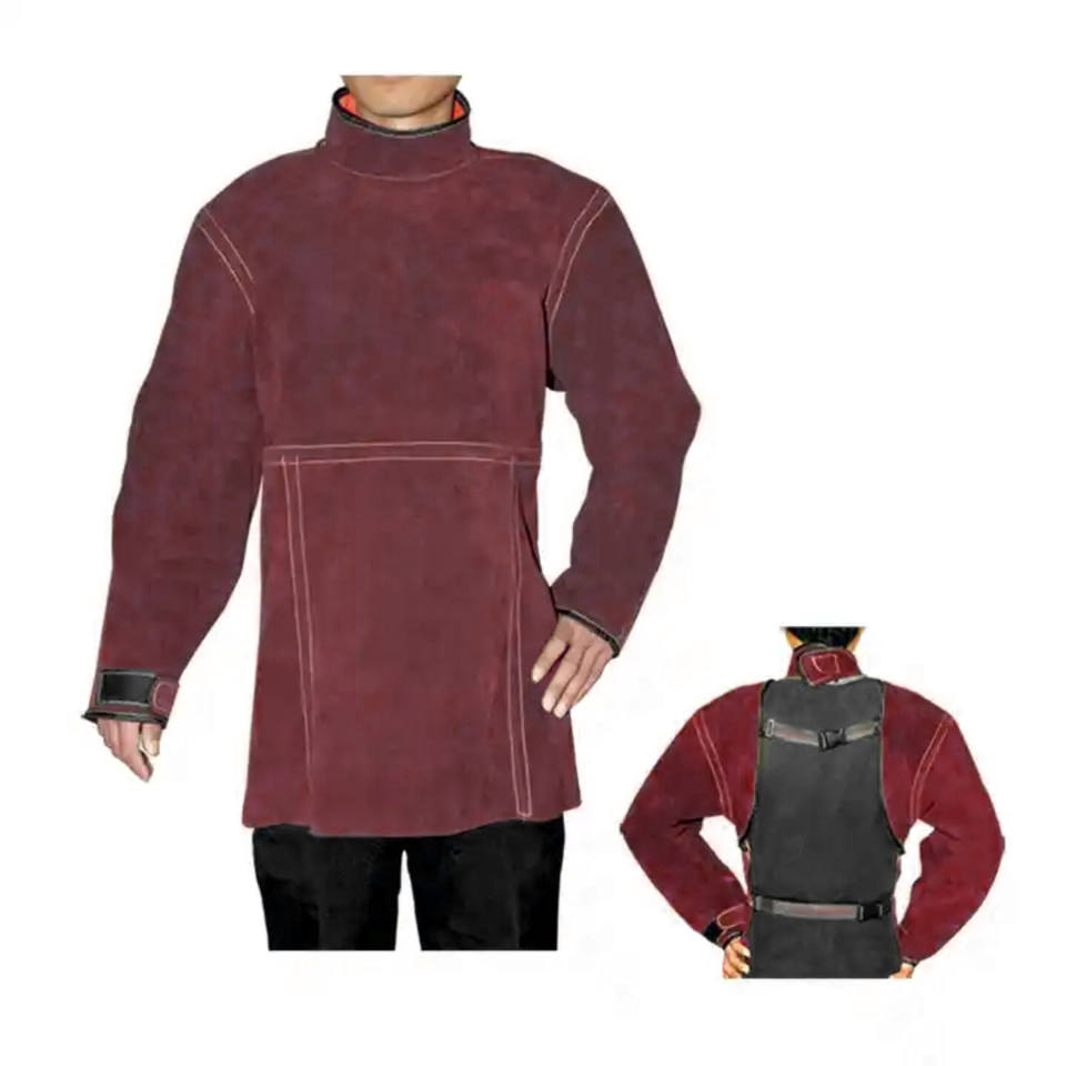 Comfortable Soft Leather Sleeved Apron Industrial Safety Fire Heat Spark Resistant Body Protection Welding Accessory Cleaning