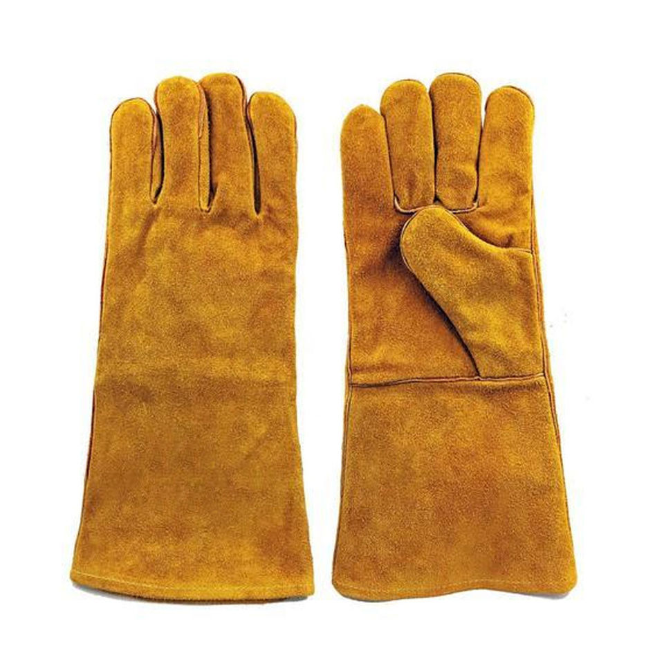 Leather Industrial Welding Long Sleeve Welding Gloves In Solid Color Long Style Heat Resistant Welding Gloves