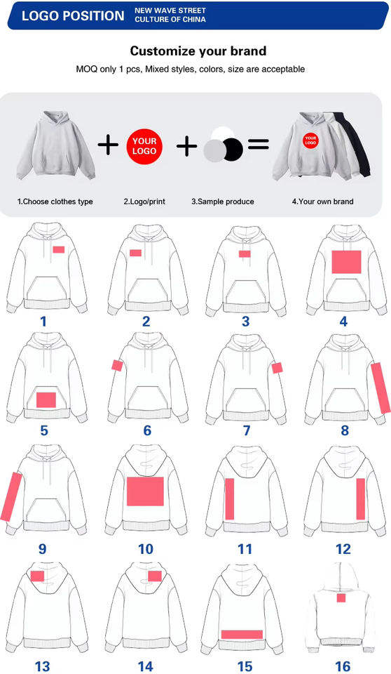 Front, back, Left Sleeve, Right Sleeve, lower hem, back neck
