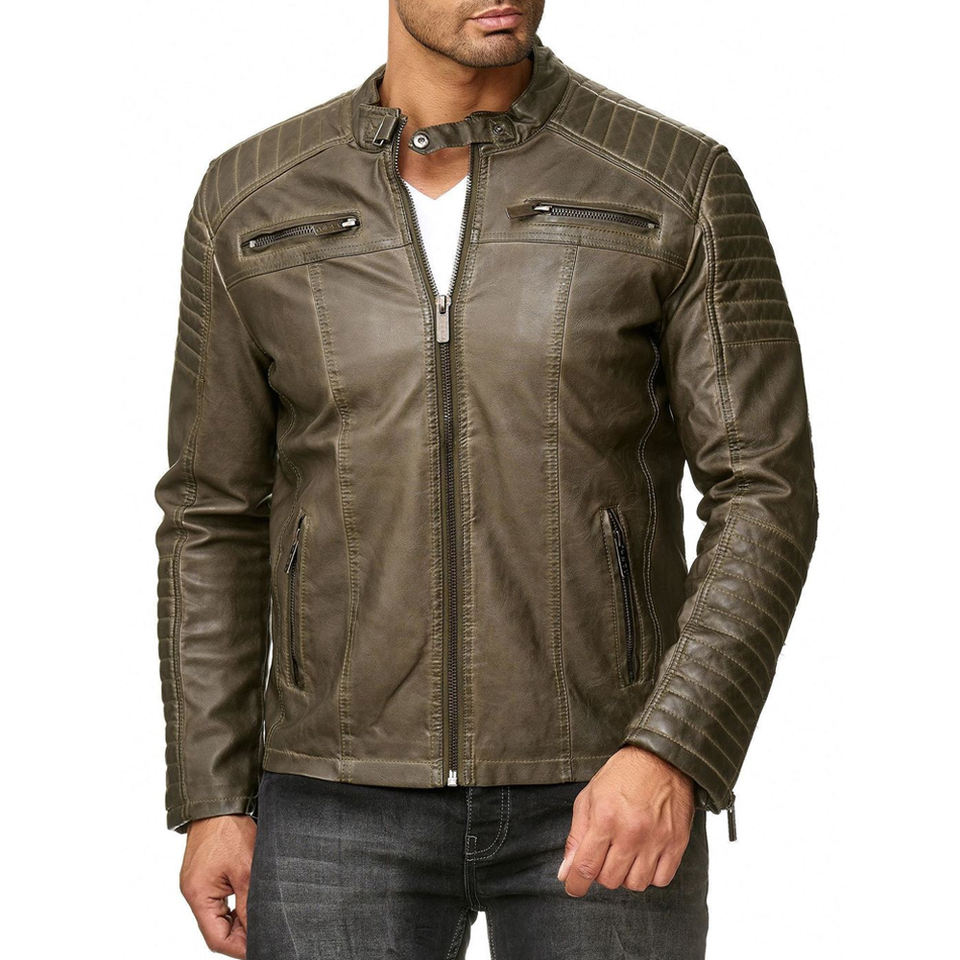 Wholesale Custom Logo Mens Fashion Biker Jacket Genuine Leather Mandarin Collar Coated High Street Premium Quality Stylish