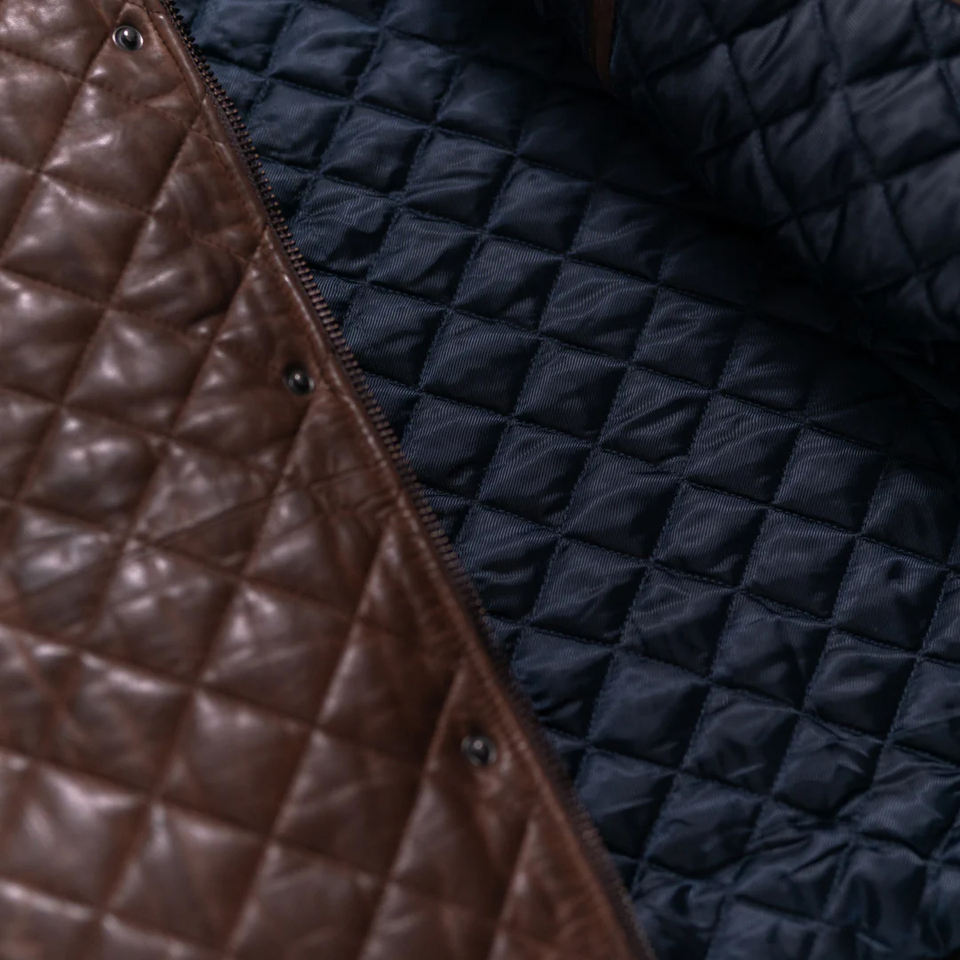 Leather Jacket OEM Custom Design Stand Collar Vintage Quilted Leather Jacket Outdoor Autumn Long Sleeve Genuine Leather Jacket