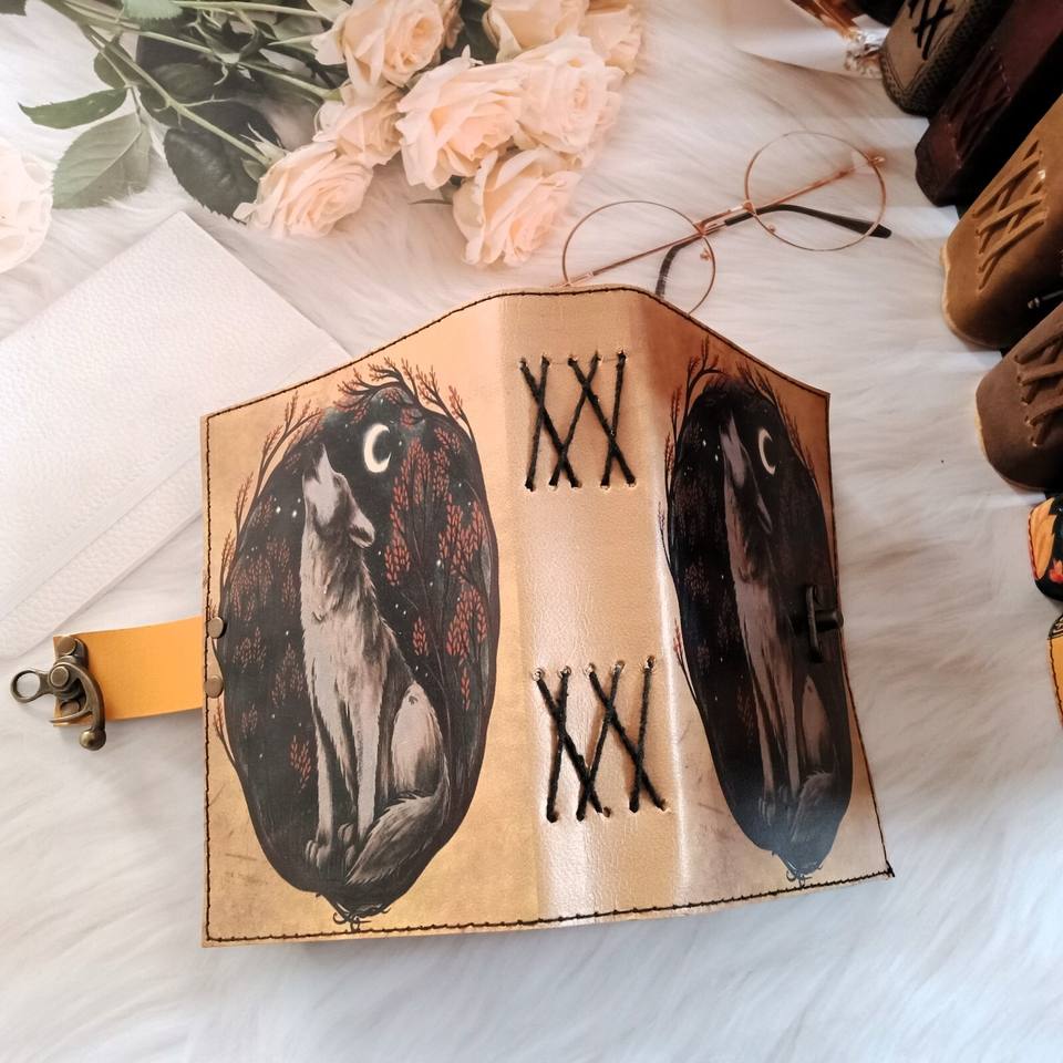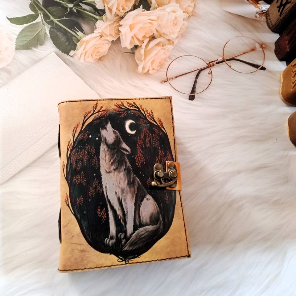 Leather Journal Wolf Moon Printed Genuine Leather Square Hardcover Eco-Friendly 120 Sheets Modern Notebook Deckle Edge Papers
