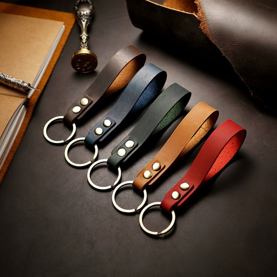 Leather Key Chain Wholesale Key Chain Accessories Luxury Metal Hook Strap Leather Key Chain Custom Brand Logo Leather Keychain