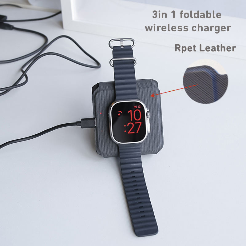 Leather Magnetic Foldable Charger Station Cellphone Headphones Smart Watch Fast Travel Charger 3 in 1 Foldable Wireless Charger