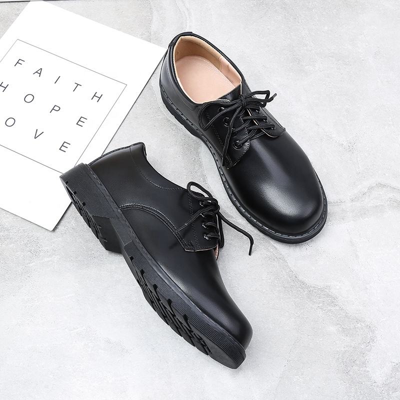 Leather Men Boys Middle School Students Teenagers Comfortable Soft Bottom Black Formal Spring Autumn Solid Lace-up Shoes