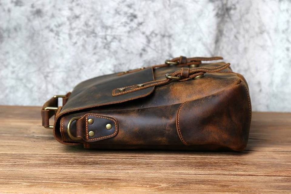 Leather Men Handbag Top Layer Horizontal Computer Crazy Horse Casual Shoulder Messenger Bag LPG-0014