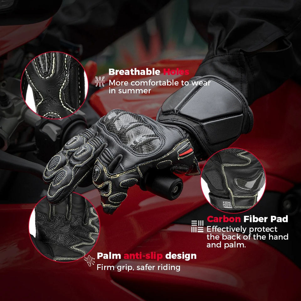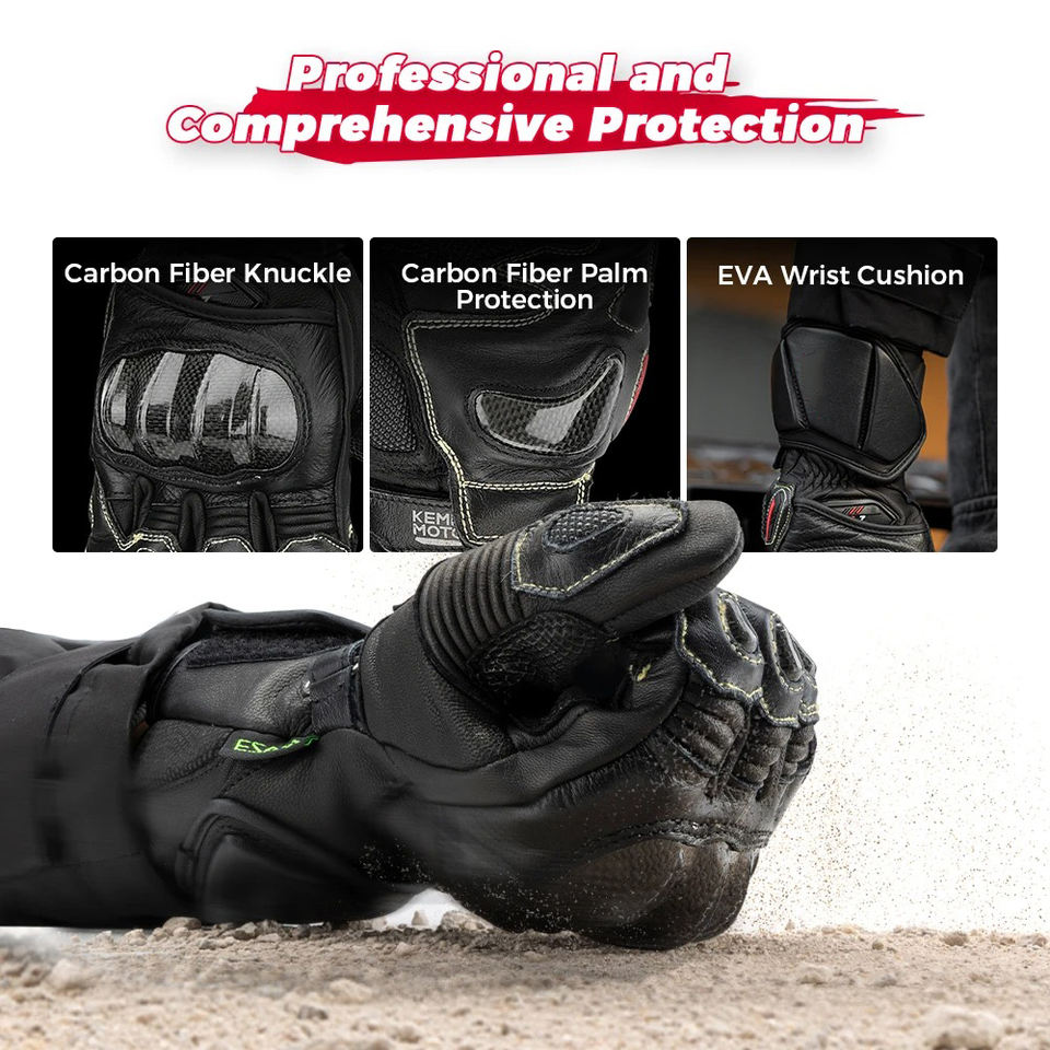 Leather Motorbike Gloves Long Cuff Racing Gloves Kevlar CE Knuckle Protection Moto Glove For Protection Professional Powersports