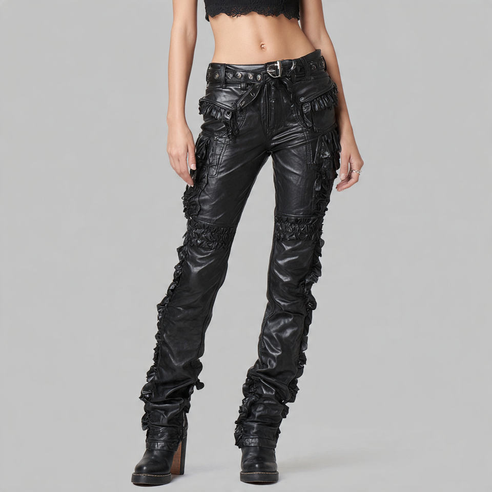 Leather Motorbike Trousers Pants Women Fashion Wear PU Leather Motorbike Biker Pants Women's