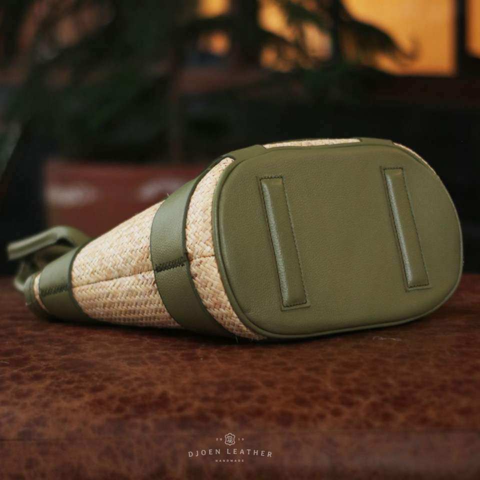 Leather Naturea Structured Tote Handmade Woven Rattan & Olive Green Leather Bag for Sustainable Everyday Elegance From Indonesia