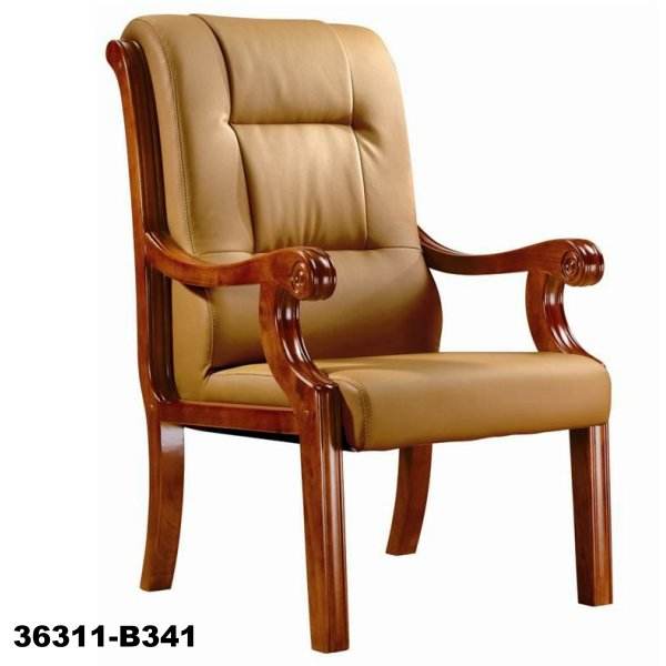 Leather Office Commercial Chair Wooden Frame Without Wheels Office Chair 36311-B332